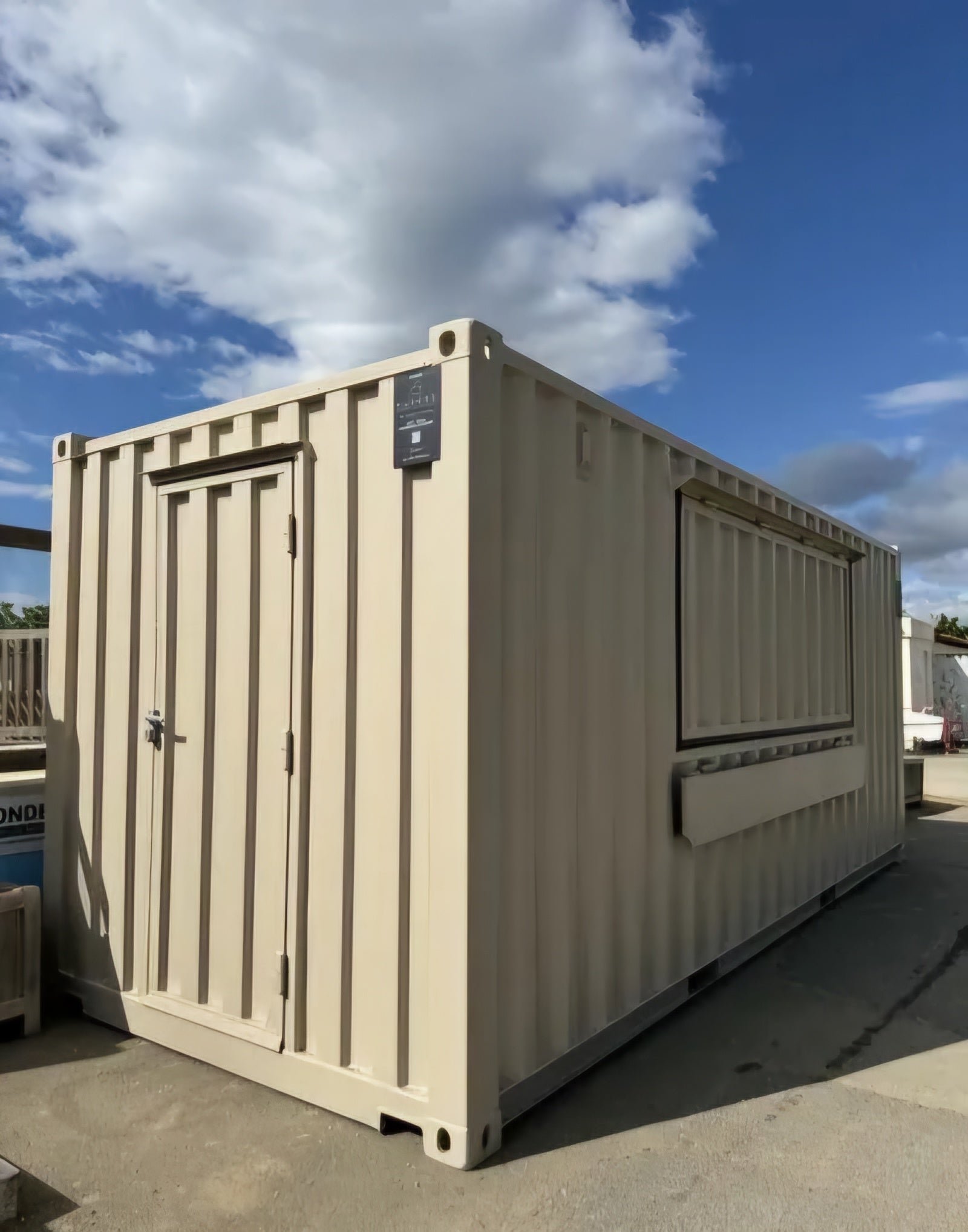 A estrutura, baseada num robusto contentor ISO, é isolada internamente e pronta para ser equipada. Perfeito para bares de verão, bilheteiras, info-points ou stands de feiras.