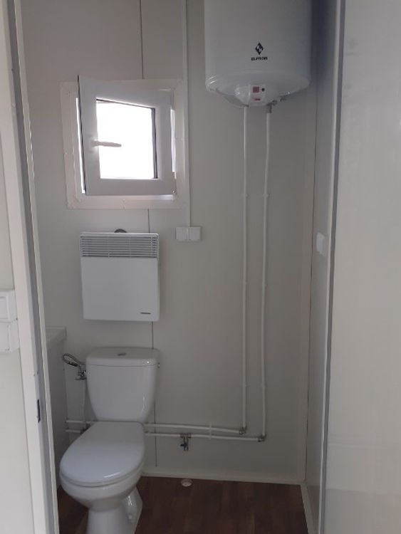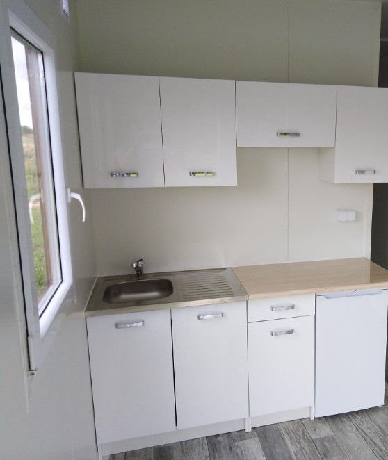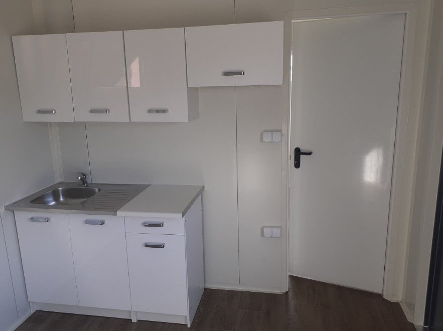 Destaca-se por um isolamento térmico excecional em poliuretano de 100 mm (superior aos padrões de construção) que garante eficiência energética e proteção total contra humidade e roedores. Dispõe de 2 quartos, sala de estar com cozinha e casa de banho completa.