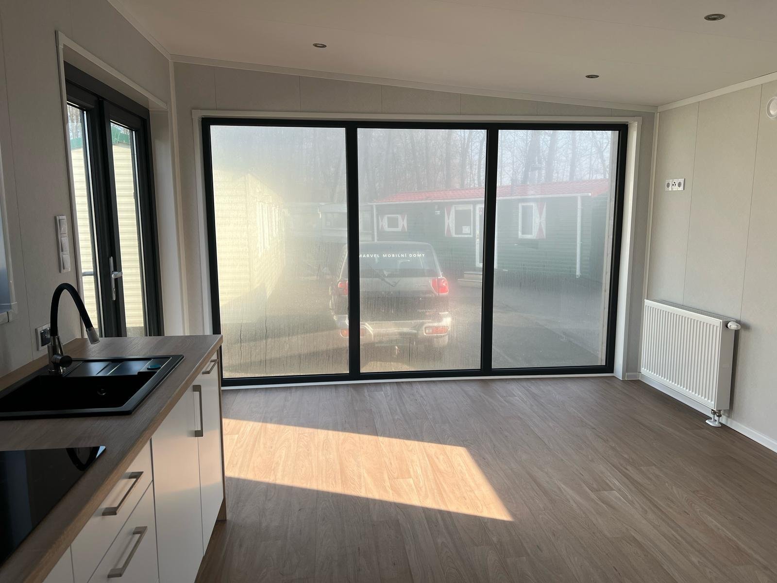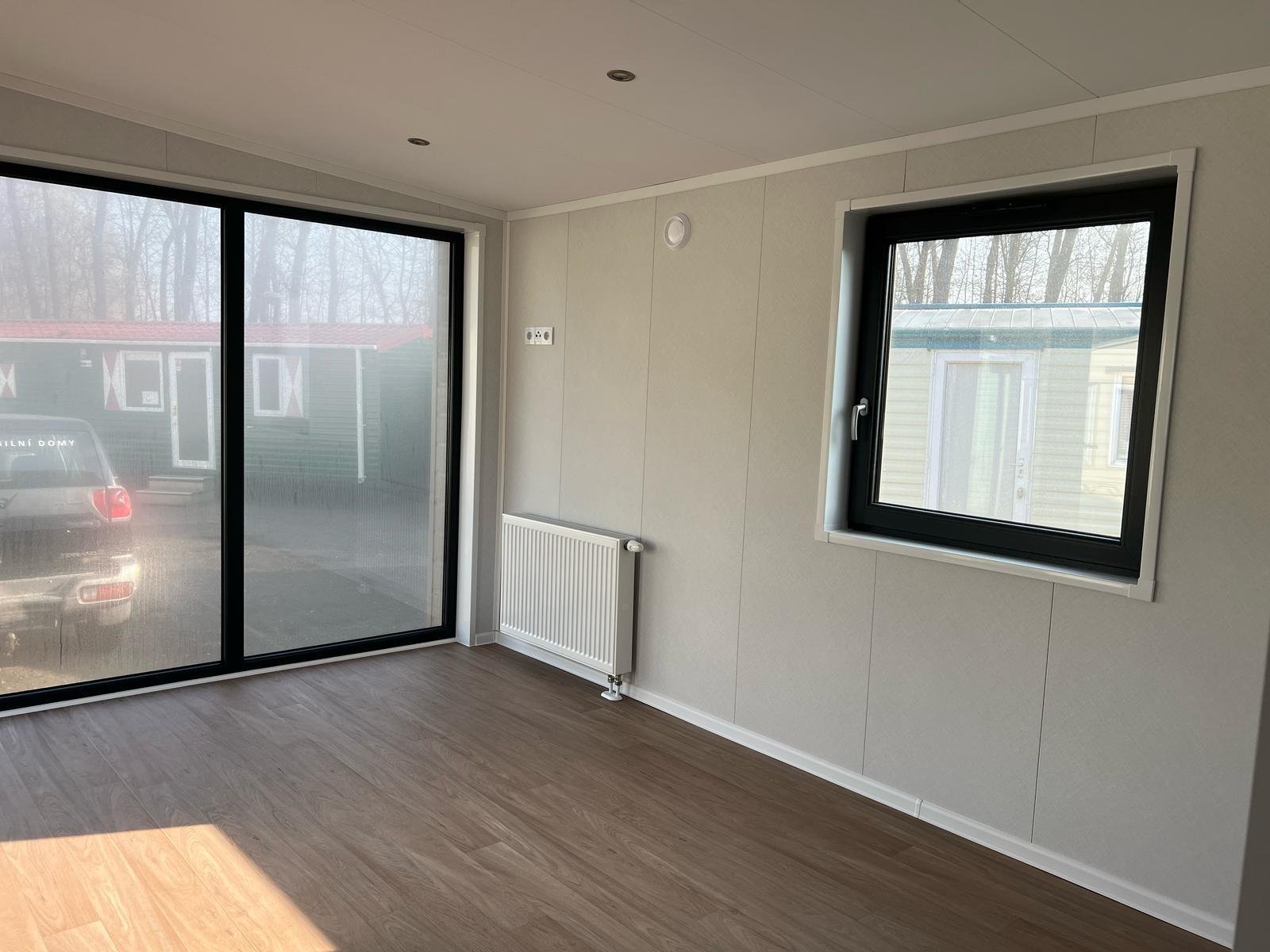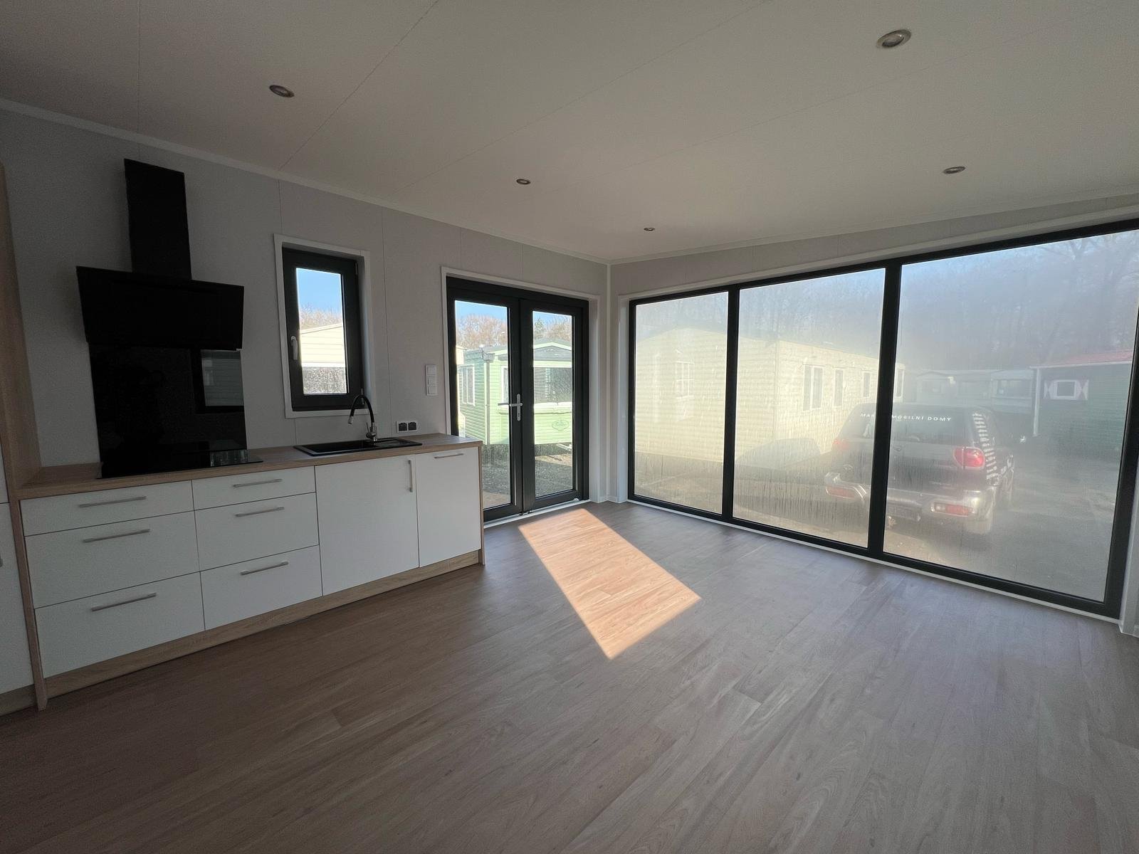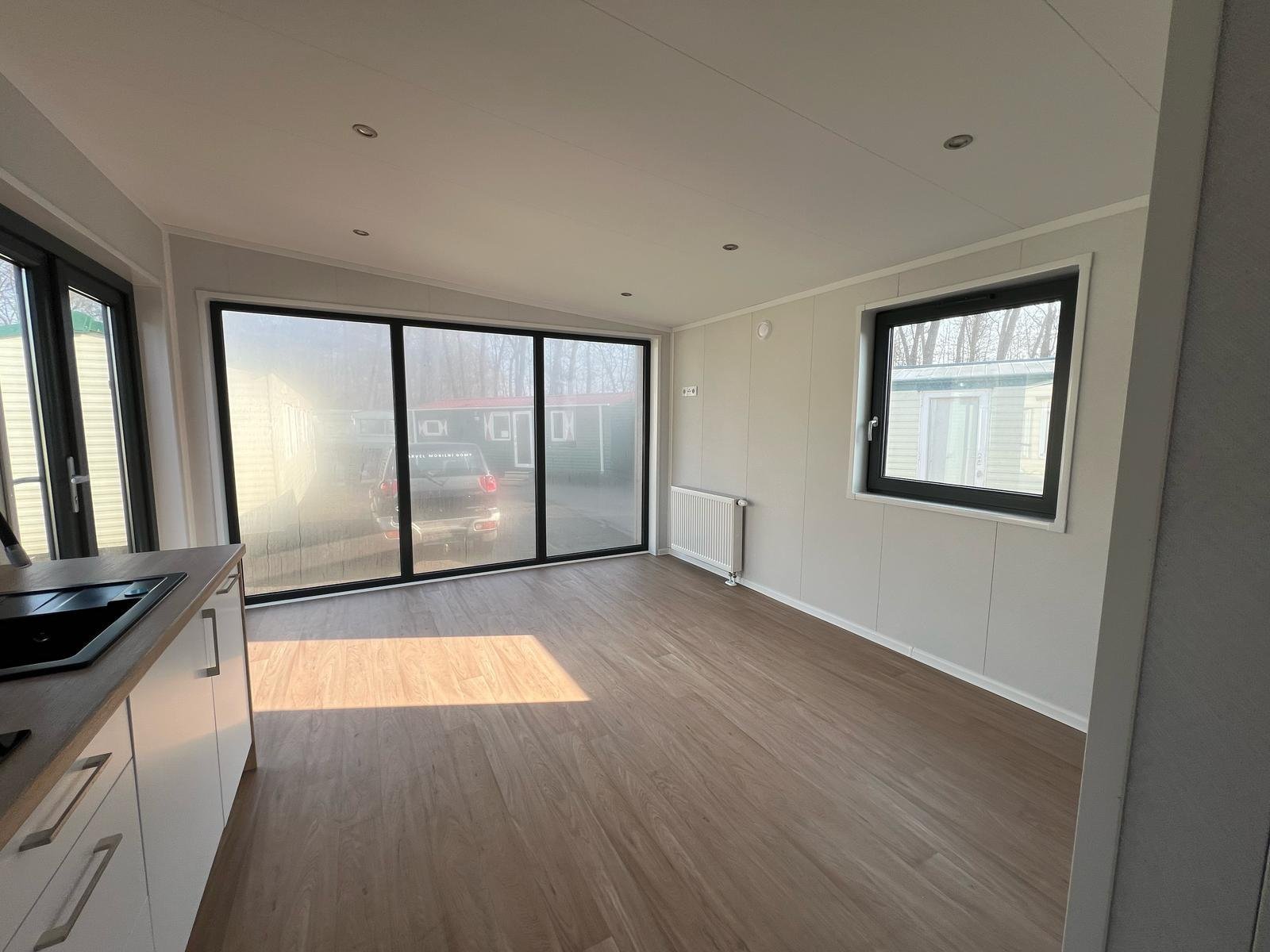 Os interiores são projetados para impressionar: ampla porta de correr envidraçada, cozinha de design bicolor e casa de banho com acabamentos efeito mármore. Perfeitamente isolada e aquecida para viver o conforto em todas as estações.