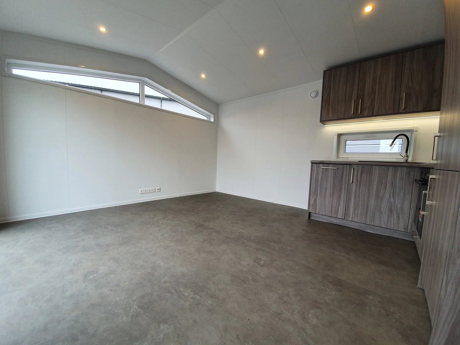 A ampla área de estar em open-space é inundada de luz graças às grandes janelas de correr. A cozinha em L é digna de um chef, completa com forno e máquina de lavar loiça, enquanto a área de dormir oferece privacidade e relaxamento com dois quartos bem separados. O excecional isolamento termoacústico permite a instalação em qualquer zona climática.