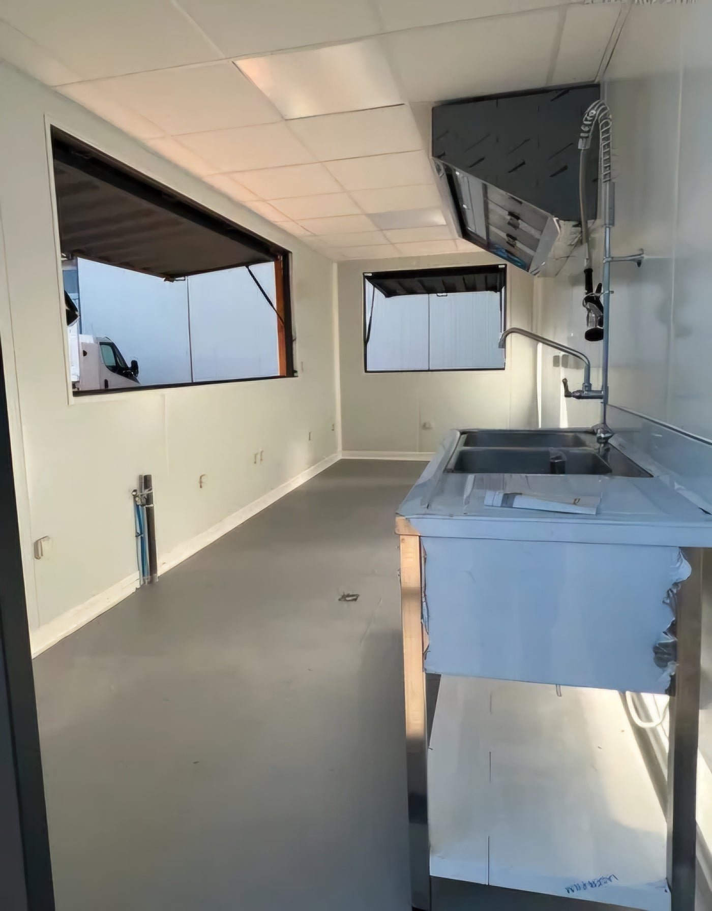 Fornito completamente attrezzato con cappa aspirante professionale, lavello, impianto idraulico e pavimento in resina con scolo. Pronto per cucinare e servire grazie alle ampie aperture a vasistas.