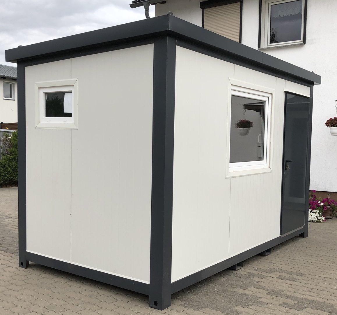 Contentor Escritório Habitacional 4×2,2m com Casa de Banho e Duche – Isolamento 7,5cm (Porta Hörmann)