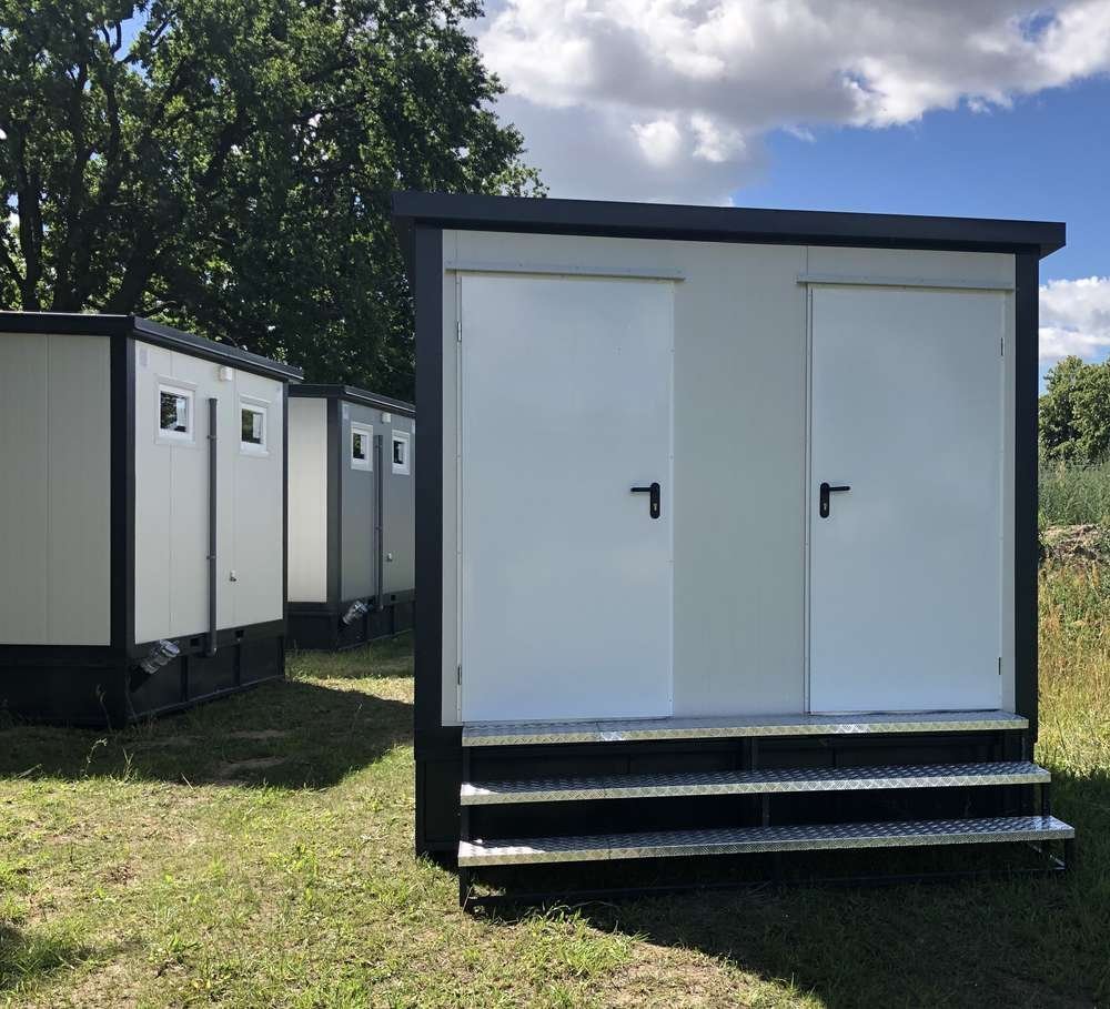 Dotato di doppio ingresso e allestimento completo (WC, Doccia, Orinatoio), vanta un isolamento termico superiore grazie ai pannelli da 80mm. Pronto all’uso: basta collegare corrente e acqua. Scala di accesso inclusa.