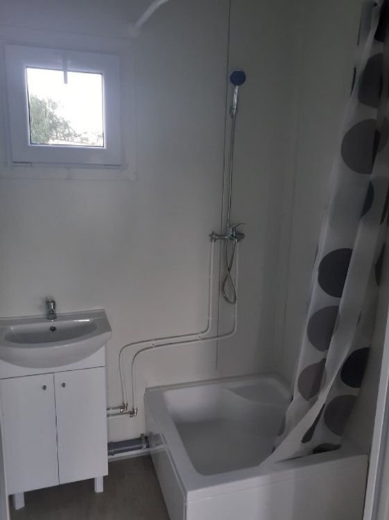 Espaço extra e conforto térmico total. Este módulo sanitário combinado oferece uma superfície de cerca de 18 m² com uma largura aumentada de 2,9 metros. Projetado para utilização intensiva durante todo o ano graças aos painéis sanduíche de 100 mm de alta isolamento.