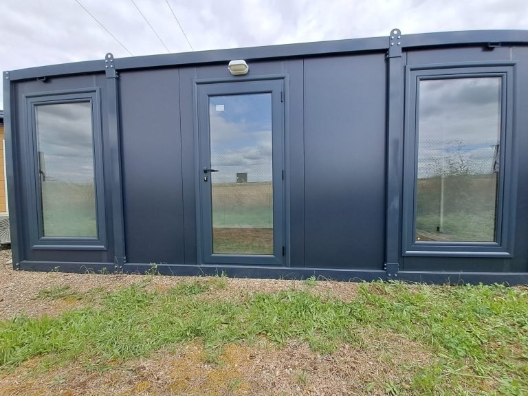 Módulo Pré-fabricado 15m² “Design” (6×2,5m) – Escritório Envídraçado Antracite (Isolado)