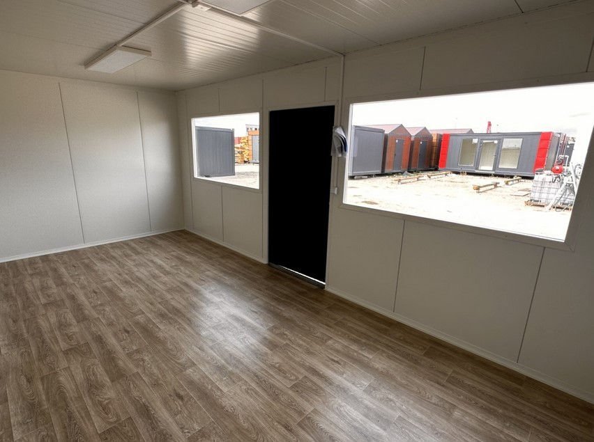 Caracterizado por uma porta de vidro e amplas janelas com persianas, garante luminosidade e visibilidade. Novo, isolado e personalizável com casa de banho e cozinha. A solução ideal para escritórios de vendas, showrooms ou espaços habitacionais temporários.