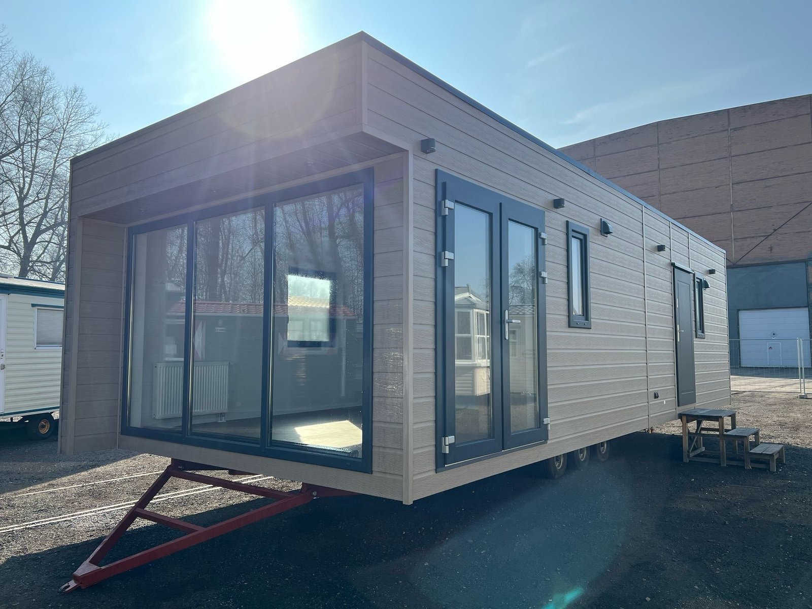 Os interiores são projetados para impressionar: ampla porta de correr envidraçada, cozinha de design bicolor e casa de banho com acabamentos efeito mármore. Perfeitamente isolada e aquecida para viver o conforto em todas as estações.